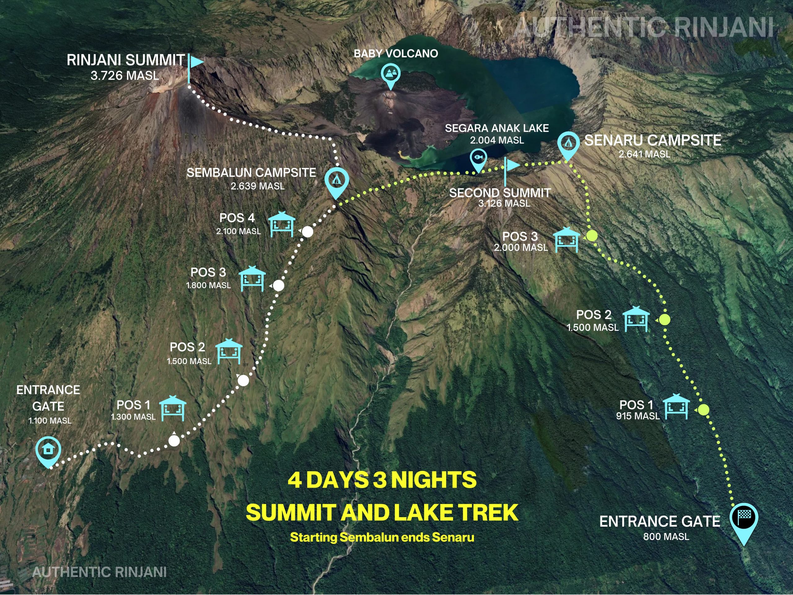 - Highest Point 3.726 M (Mount Rinjani Summit)
