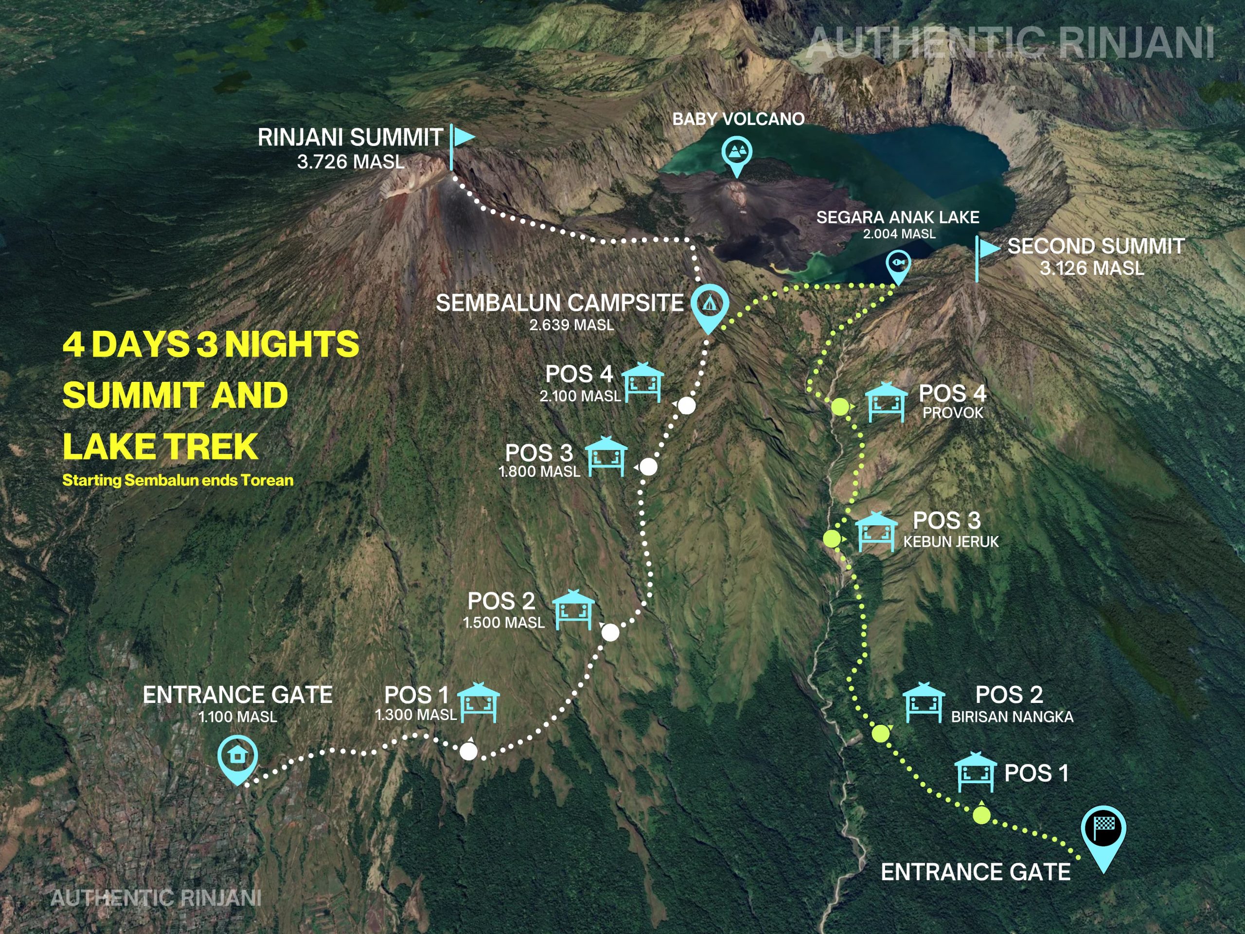 - Highest Point 3.726 M (Mount Rinjani Summit)