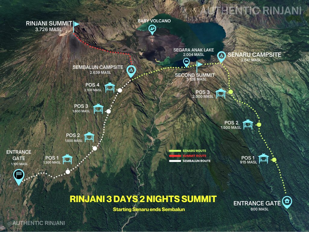 • Highest Point: Mount Rinjani Summit – 3,726 m