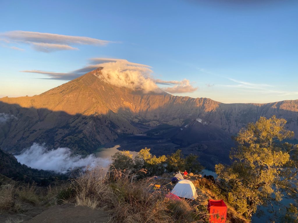 Once you made it to the crater rim, you will see the huge crater filled with a lake and its special blue water surrounding the inner baby volcano was incredibly unique and picturesque. The peaks around it are massive, and you will be able to see Gilis Island in horizon and an epic sunset.