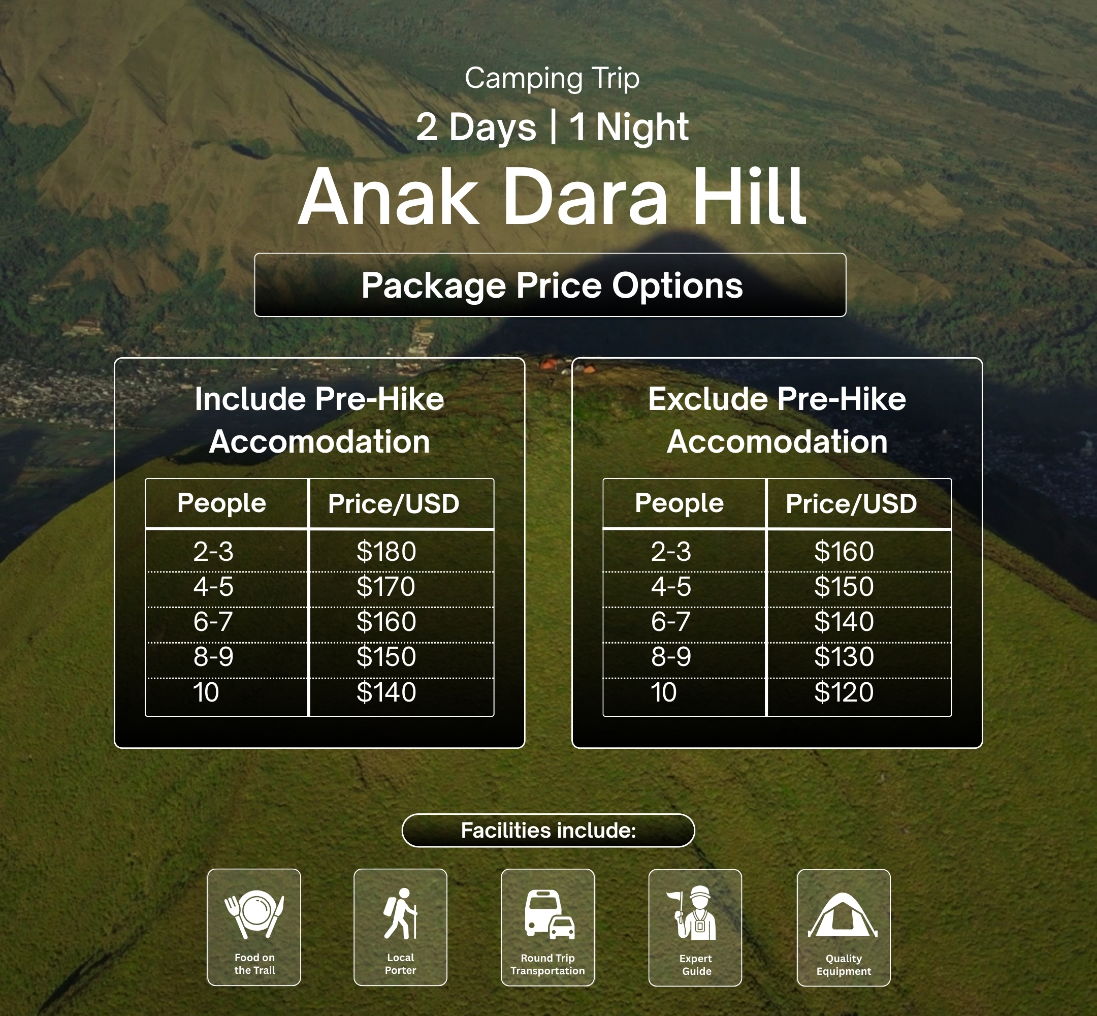 This trip is suitable for beginner to moderate hikers and is a perfect alternative for those who want a scenic mountain experience without trekking Mount Rinjani