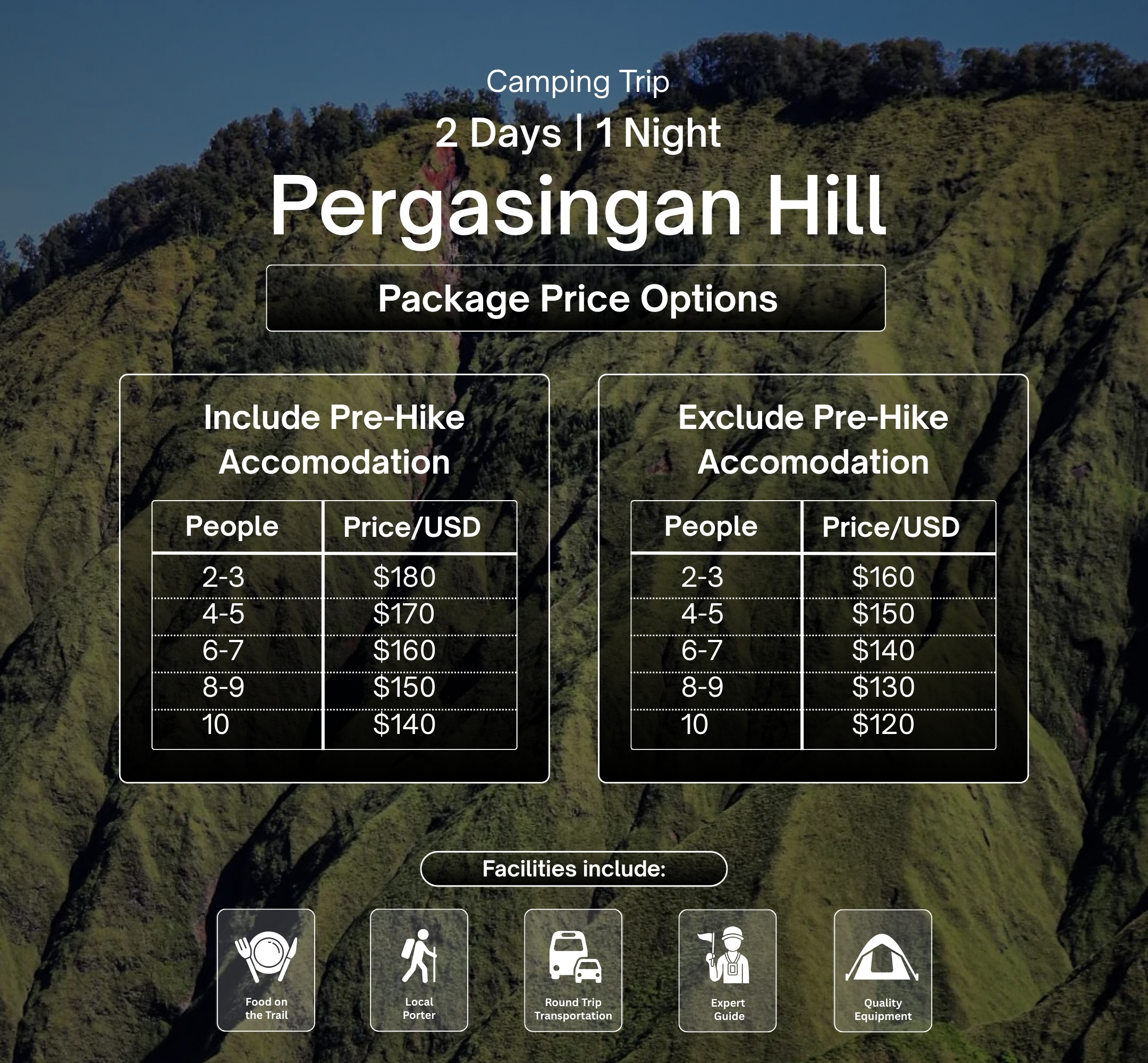 Pergasingan Hill, located just above Sembalun Village in East Lombok, is one of the most popular trekking destinations for those looking for a scenic adventure without the challenge of summiting Mount Rinjani. This 2 Days 1 Night camping trip offers a perfect balance of moderate hiking, panoramic views, peaceful camping, and unforgettable sunrise and sunset moments.